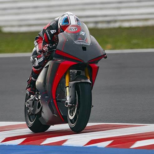 Ce que l’on sait, c’est qu’Emmanuele Pirro, le pilote d’essai, semble très content de son nouveau jouet: « La moto est légère et possède déjà un bon équilibre. Par ailleurs, la connexion de l’accélérateur dans la première phase d’ouverture et l’ergonomie sont très similaires à celles d’une moto de MotoGP. S’il n’y avait pas le silence et le fait que dans ce test, nous avons décidé de limiter la puissance à seulement 70% de la performance, j’aurais facilement pu imaginer que je roulais sur ma moto ».