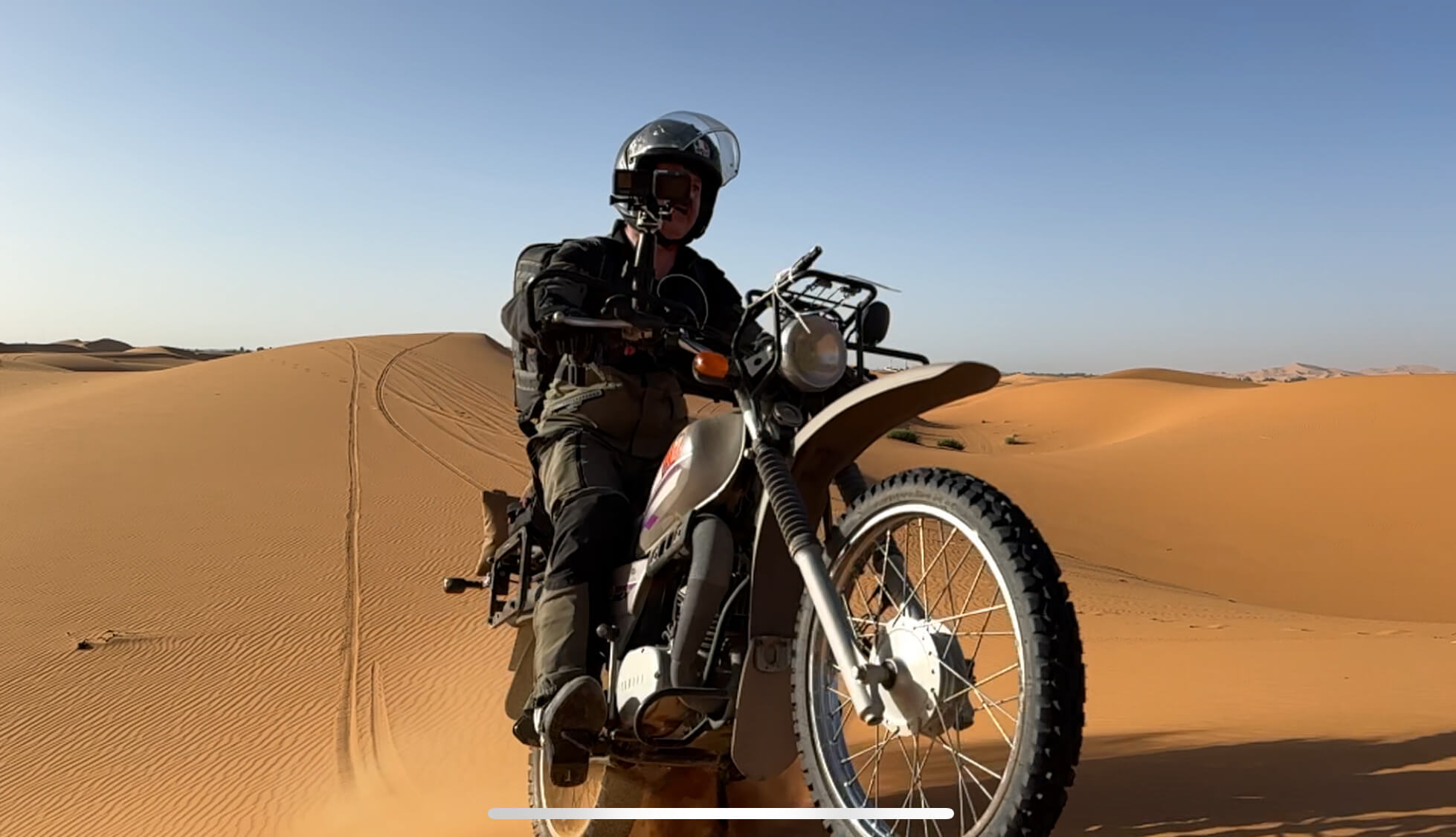 Sur ma route direction Dakar, j'emmène ma petite AG100 dans les dunes.