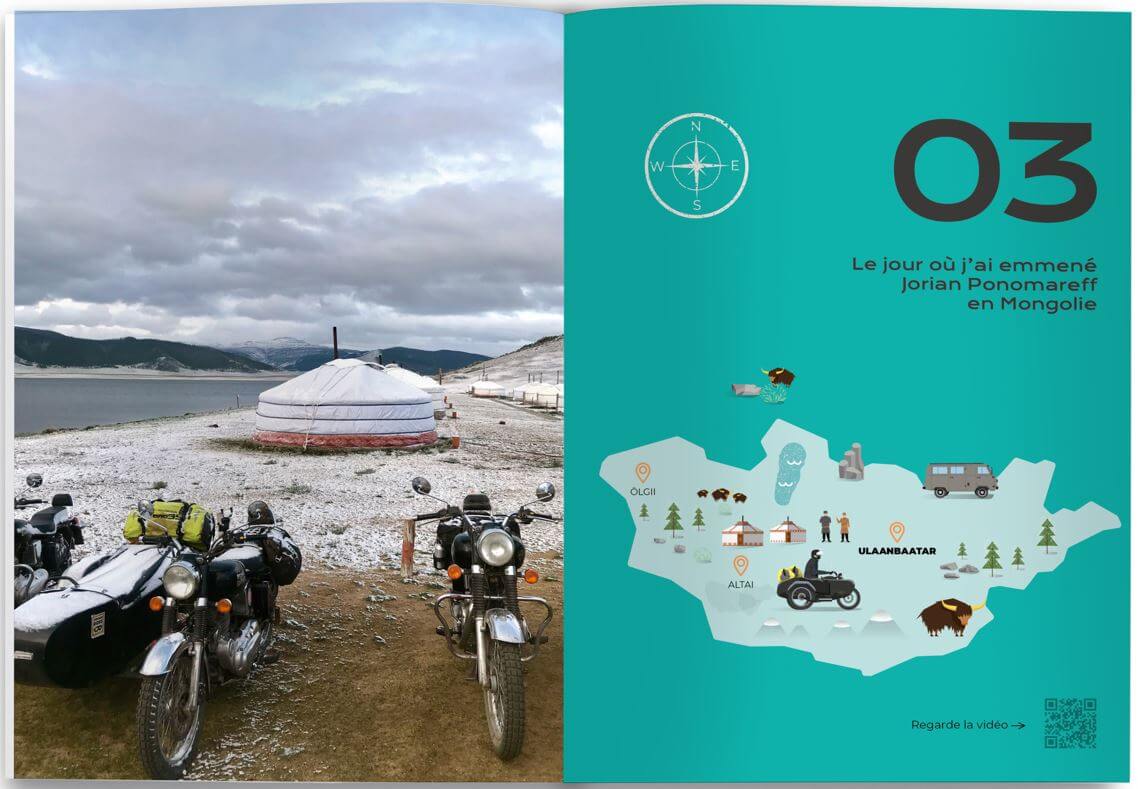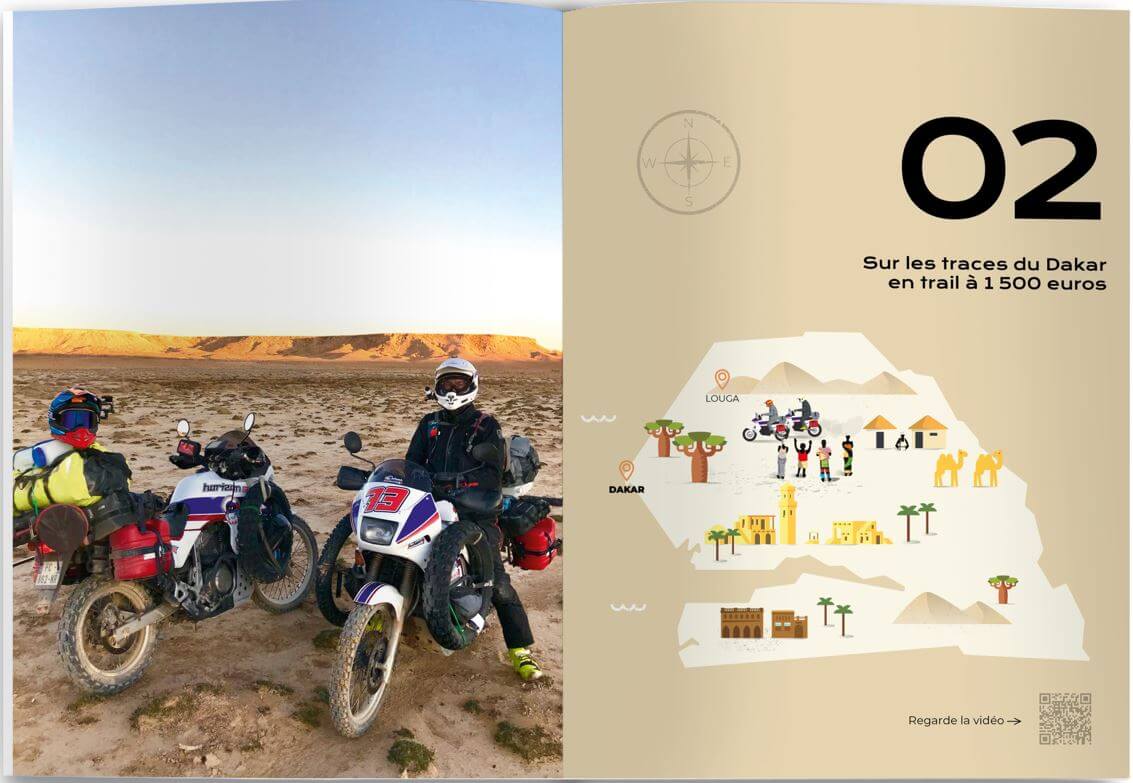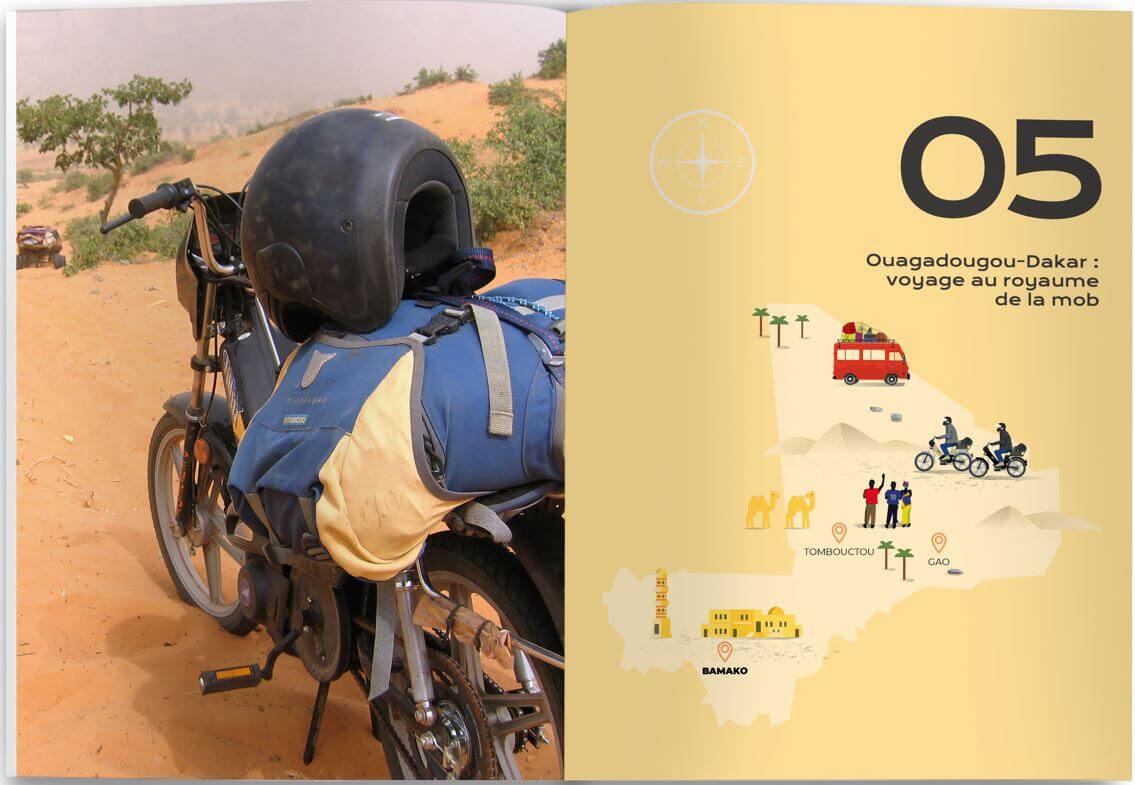 Bon, ben … pour un mec qui ne voulait pas écrire de livre, voici le deuxième opus! Déjà! « Viens je t’emmène », ça sonne comme une promesse, et j’espère sincèrement qu’elle sera tenue au terme de ta lecture. Alors viens, je t’emmène en mob, au fin fond du Mali, du Burkina et du Sénégal pour ce qui fut l’un de mes road trips fondateurs. Oui, à dos de mob, celle sur laquelle on charge les légumes, la chèvre ou le phacochère que l’on va vendre au marché, à 30 bornes de là! La mob un peu taxi, passe-partout, signe extérieur de richesse pour la drague mais également incomparablement passe partout. La mob qui te laisse le temps d’apprécier les paysages et le temps qui passe du côté du Pays Dogon ou encore de Mopti. Je t’emmène aussi en Mongolie, en side-car. En compagnie d’un type qui n’avait jamais voyage de sa vie et était pourtant à la tête d’une chaîne moto You Tube avec plus d’un million d’abonnés. Surprise garantie. Je t’emmène, seul, en autonomie totale sur la planète Mars, ou plutôt en Islande au guidon de Betty, ma BMW Urban GS équipée d’un treuil et d’un snorkel pour tenter de se sortir, seul, de toutes les situations. Je t’emmène dans les arcanes d’une course d’endurance en famille et en 125 où l’on va devoir démonter et remonter un moteur en un temps record en pleine nuit, ou encore jusqu’à Dakar à dos d’une bonne vieille Transalp achetée 1.500 euros sur Le Bon Coin. Le début d’une très belle histoire d’amitié. Bon, je vais pas trop te spoiler non plus, mais sache juste que ce livre est aussi le témoin d’une liberté que j’apprécie tous les jours, en France, aux quatre coins du monde mais aussi lorsque je rentre chez moi bien au chaud, les autres soirs en famille. Allez, viens je t’emmène.